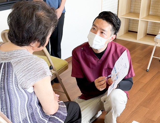 毎週ケアマネジャーとリハビリ専門職が訪問し健康相談や集団体操を行います。健康状態の把握や運動機能の維持・向上をサポートいたします。