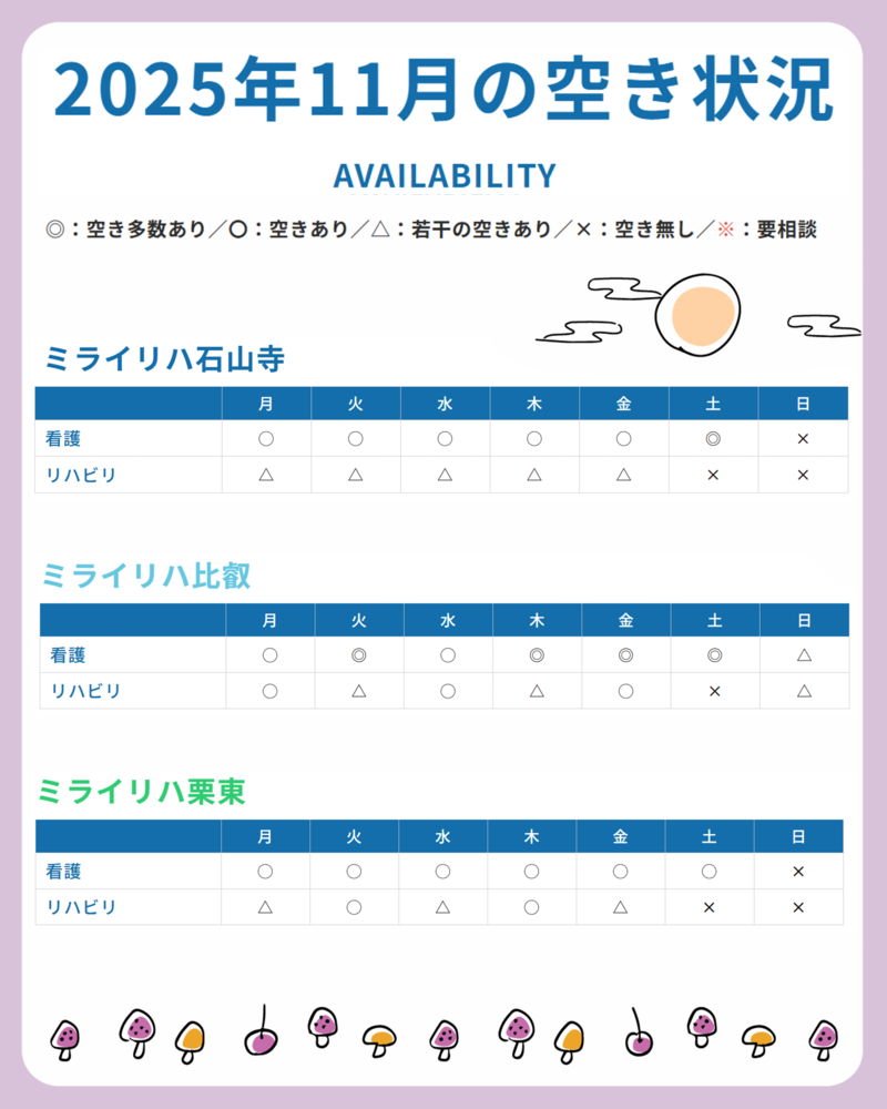 🍁11月の訪問看護のご利用枠についてのお知らせ🍁【ミライリハ訪問看護リハビリステーション】