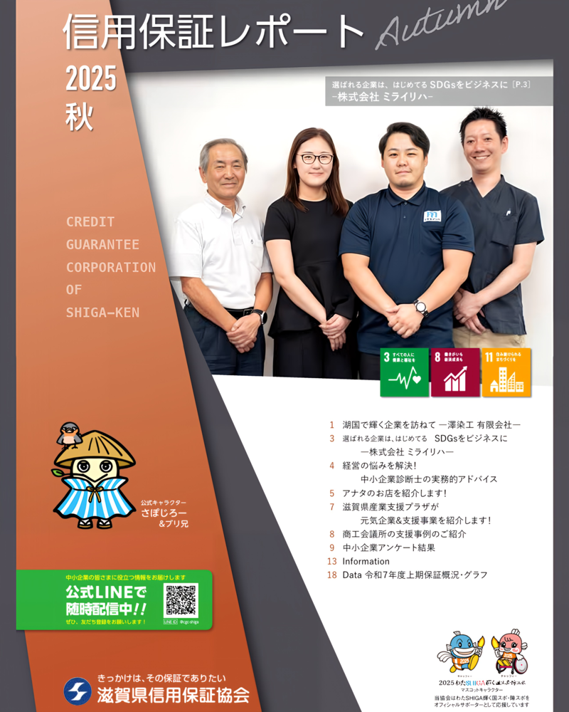 この度、株式会社ミライリハは、滋賀県の中小企業を支援する公的機関、滋賀県信用保証協会が発行する『信用保証レポート 2025秋号』に、事例企業として掲載されました!