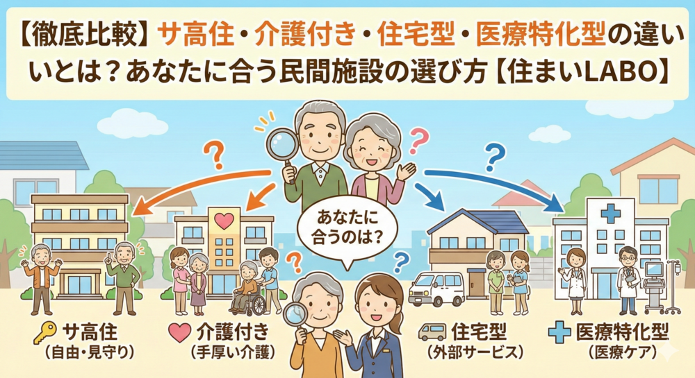 【徹底比較】サ高住・介護付き・住宅型・医療特化型の違いとは?あなたに合う民間施設の選び方【住まいLABO】
